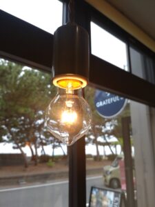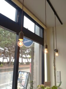 照明もオシャレで、日が暮れてからのお店は、昼間とは一味違う落ち着きのあるアートスタジオのような雰囲気。
