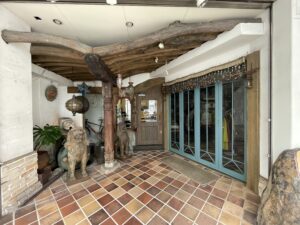 アジアンテイストなエントランス。エスニックなレディースアパレルを扱う老舗店「トンボヤ」さんの2階です!