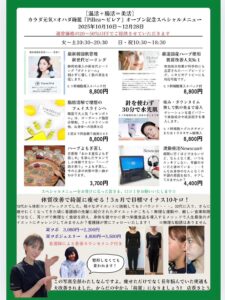 Pilleaのオープンを記念し、2025年12月28日までの期間限定で、施術メニューを通常価格の20%〜最大50%オフでご提供中!
