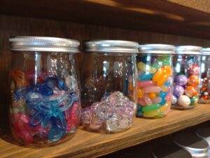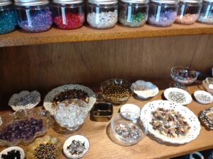 福岡の手芸店で働いていたという店主さんが世界中から集めた、選りすぐりのパーツを「宝探し」のように楽しみながらお気に入りを見つけてほしいと、心を込めて並べていました。